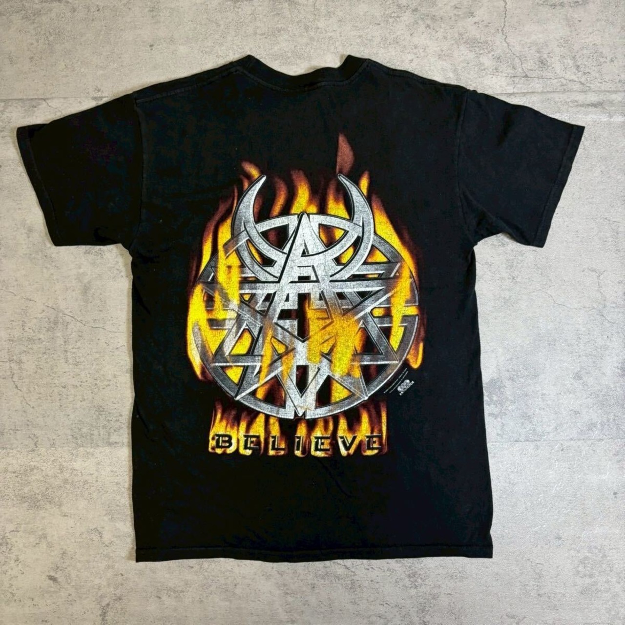 00s カナダ製 Vintage Disturbed Band Believe Tour Tee Shirt M 2002 バンドTシャツ ヴィンテージ ディスターブド ファイヤーパターン