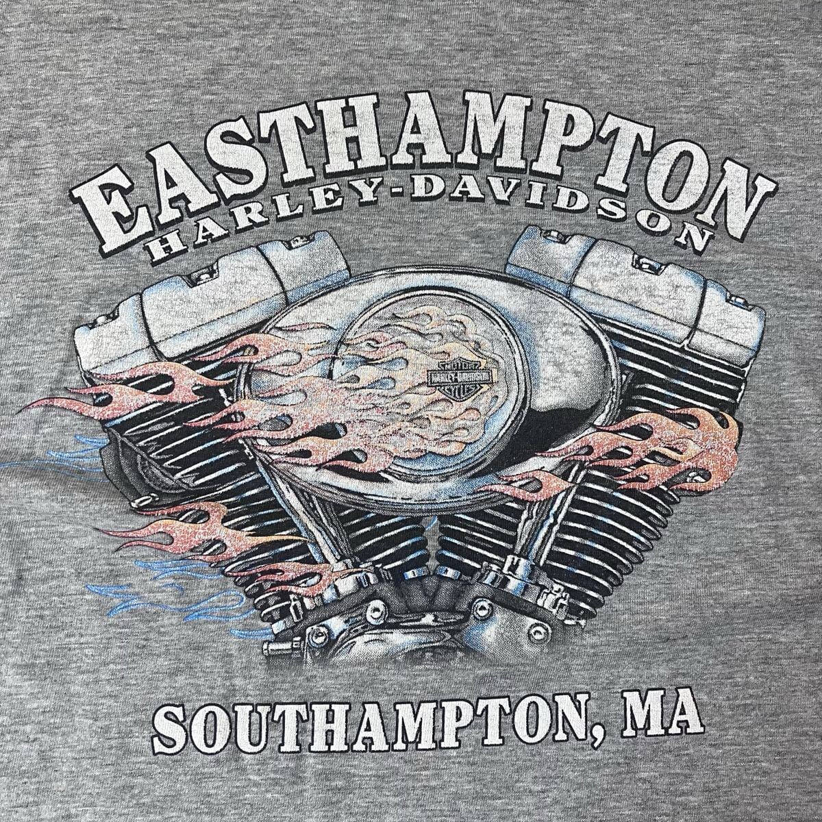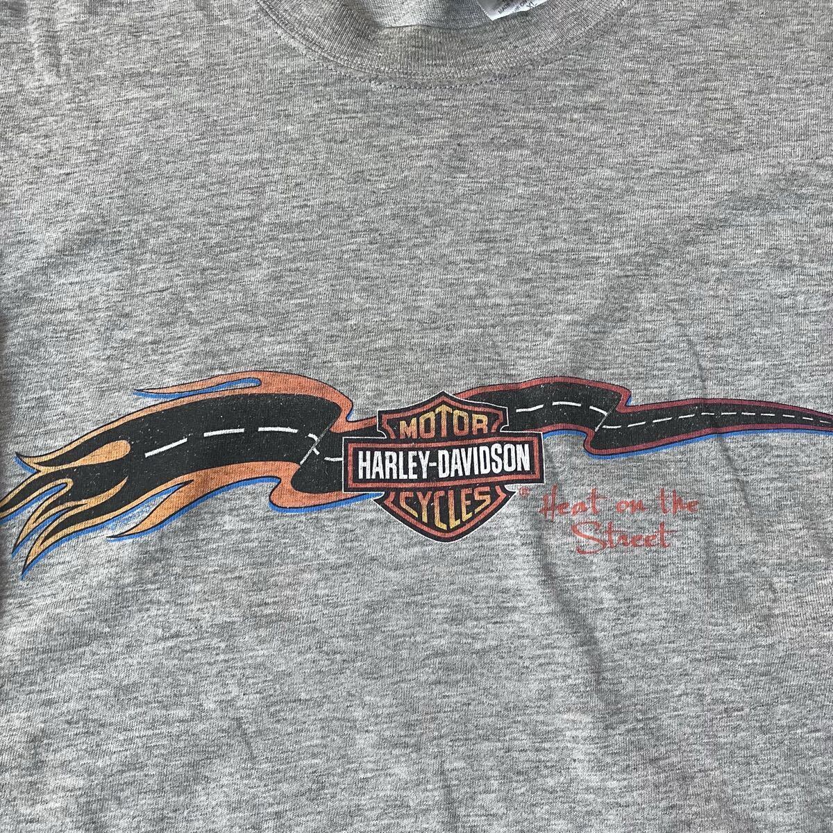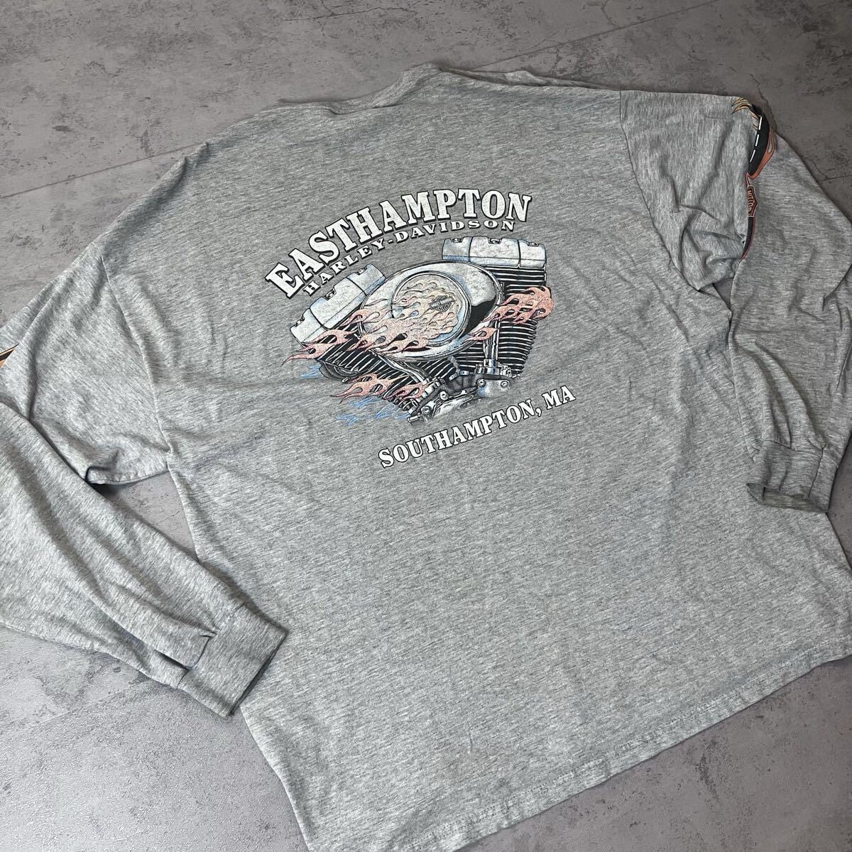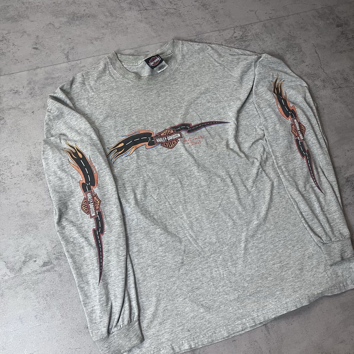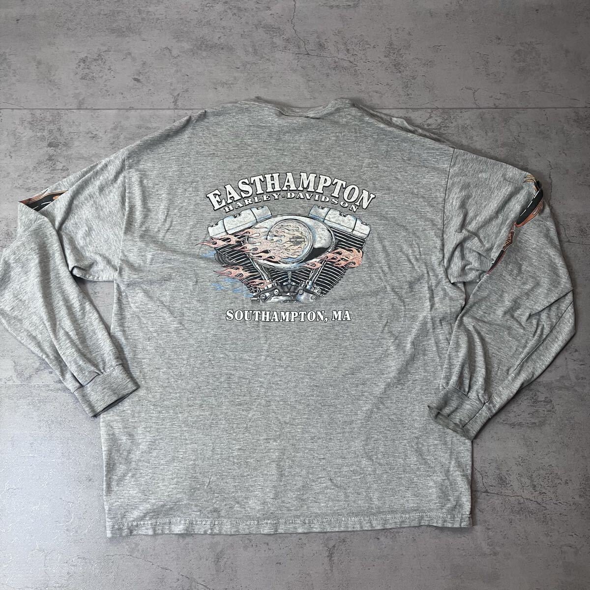 00s USA製 Harley-Davidson ロンT フレイムエンジン ファイヤーパターン 両袖プリント XL
