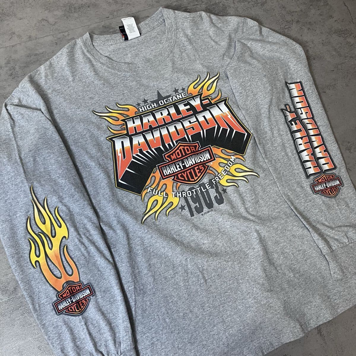 00s Harley-Davidson ロンT 両袖フレイム グレー 2018 PITTSBURGH L