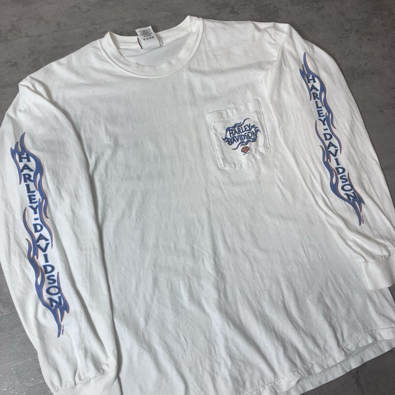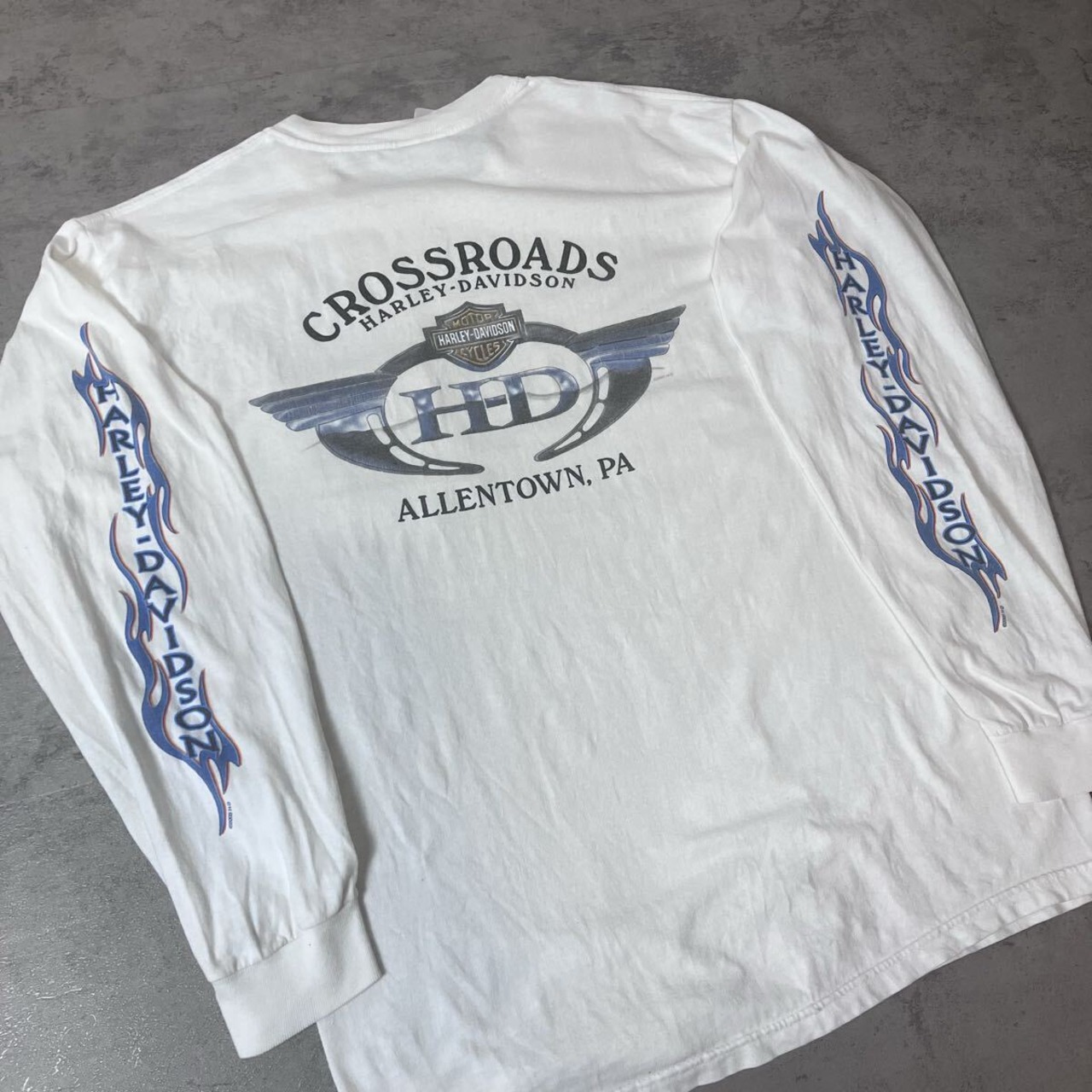 00s USA製 Harley-Davidson ロンT 両袖ブルーフレイム Crossroads M