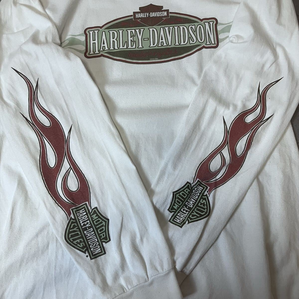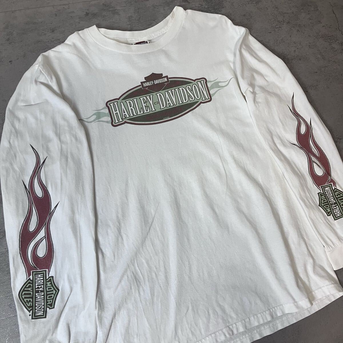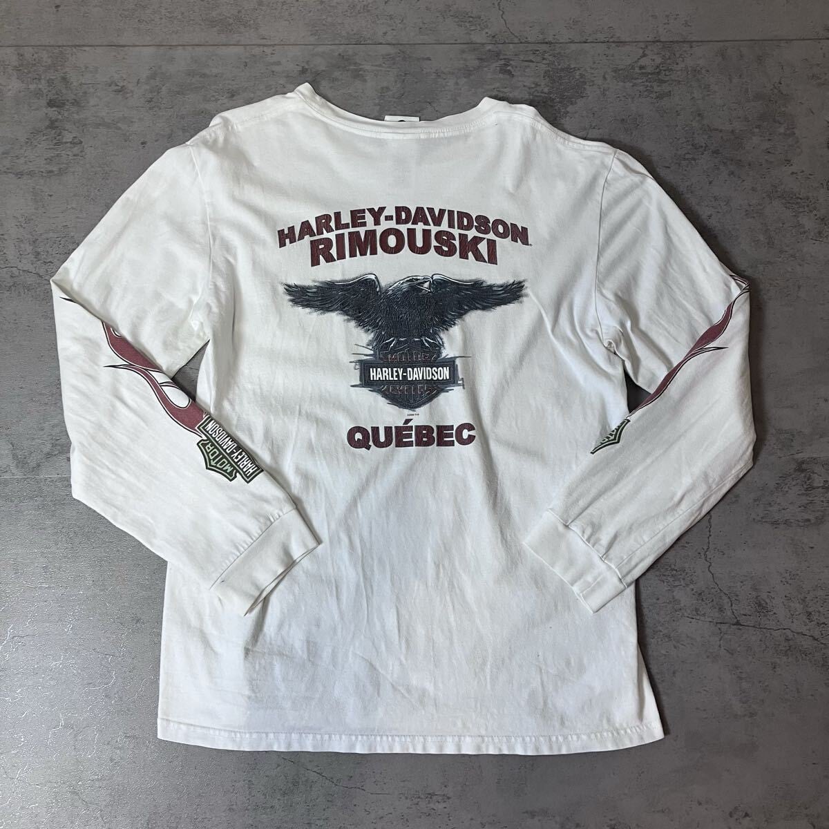 00s Harley-Davidson RIMOUSKI ロンT 両袖フレイム 白 バックイーグル L