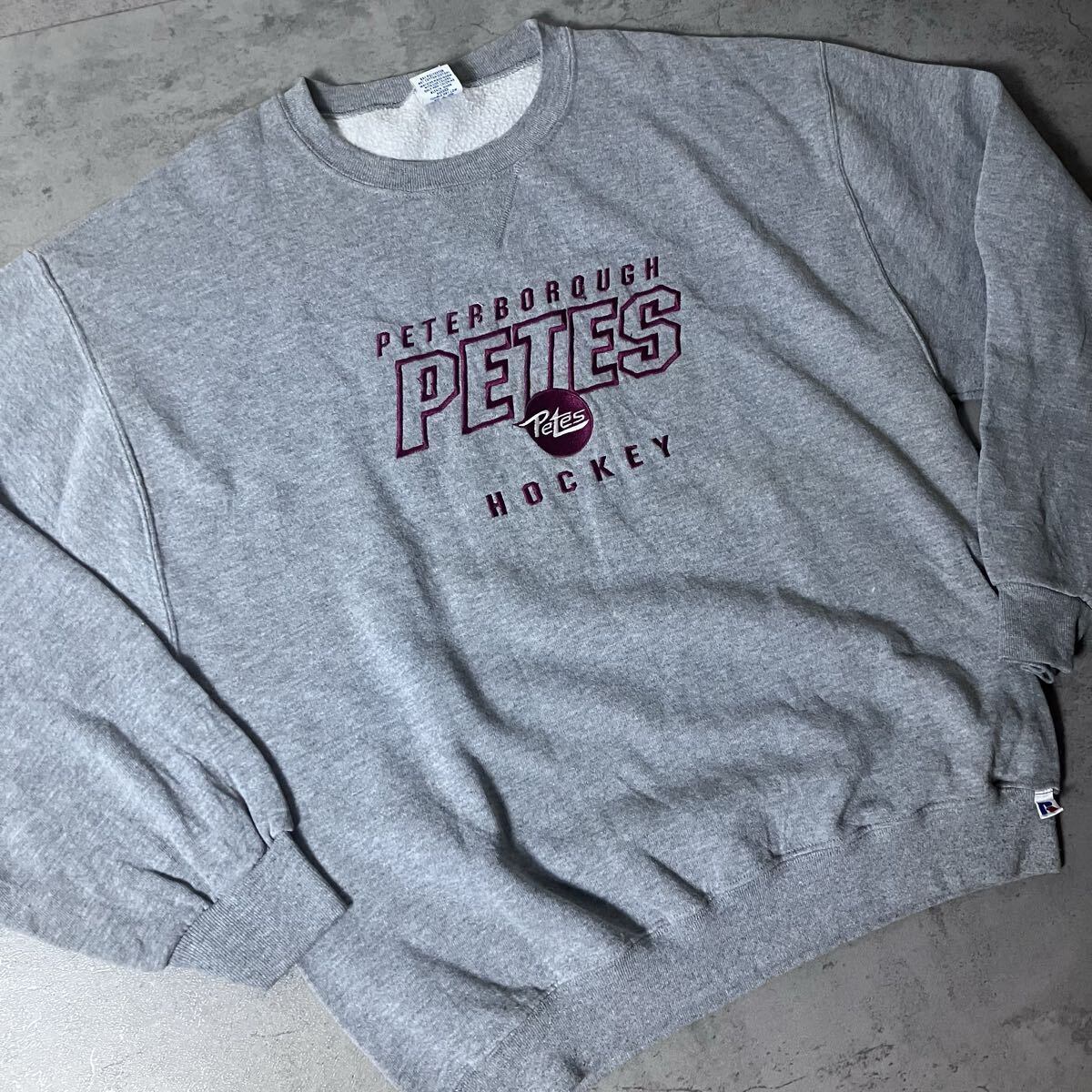 90s〜 RUSSELL ATHLETIC “Peterborough Petes” 刺繍スウェット グレー Lサイズ ラッセル