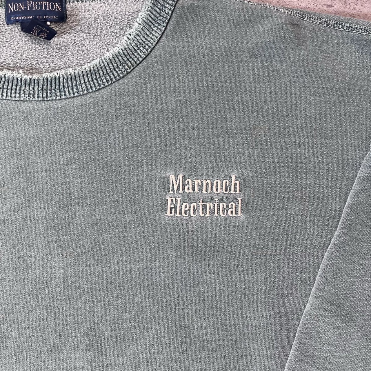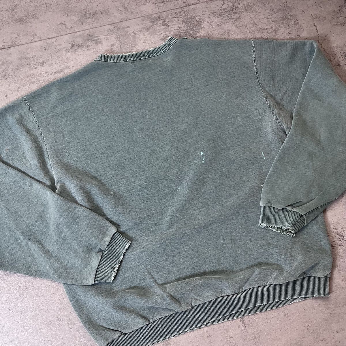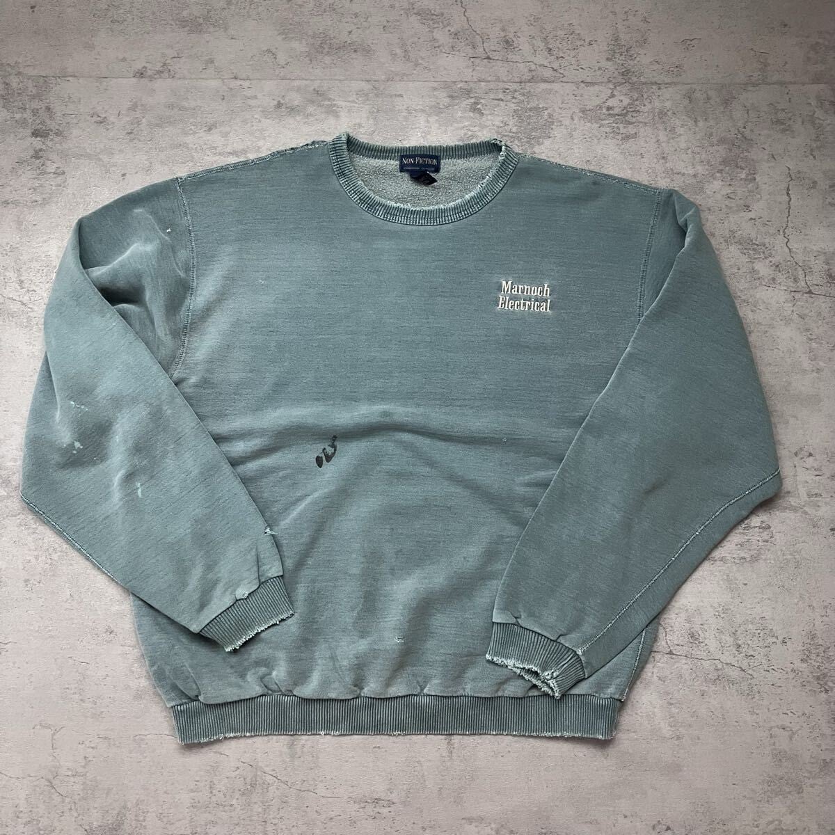 90s〜 Non-Fiction カナダ製 スウェット L グリーン フェード 刺繍ロゴ ダメージ 90s ダメージ