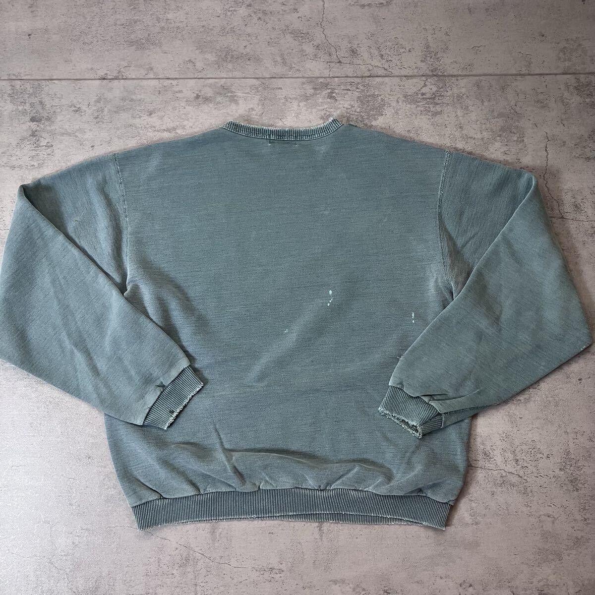 コットン100%の肉厚ボディに、全体の色落ち・フェード感・リブのダメージが完璧にハマった一着。