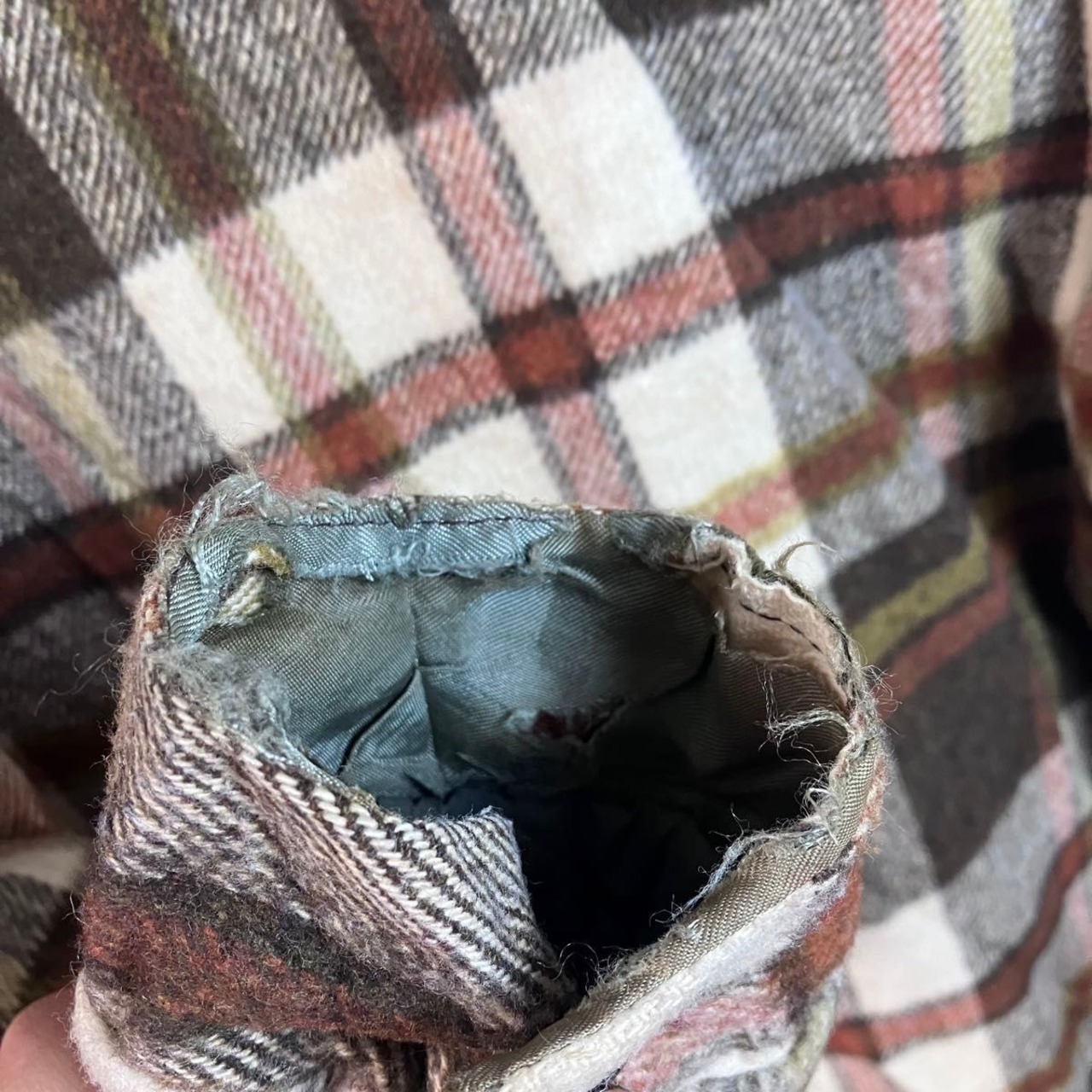 左肩若干の穴あきあり 袖口破れあり