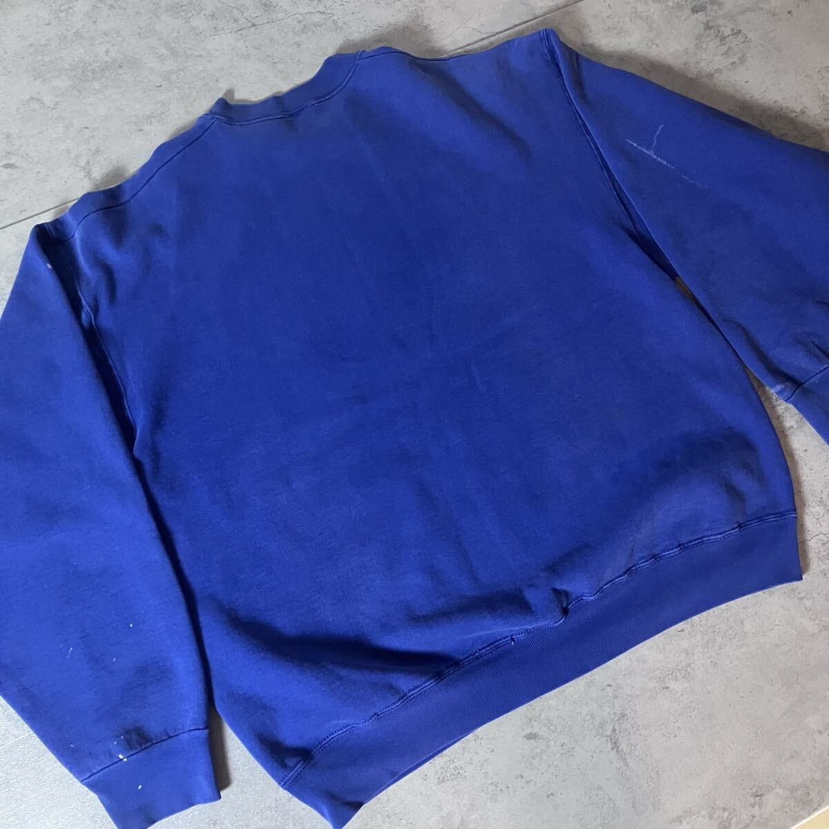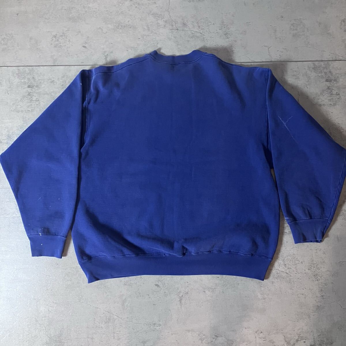 90s〜 無地スウェット ロイヤルブルー 裏起毛 ペンキ跡 フェード ワーク グランジ XL相当