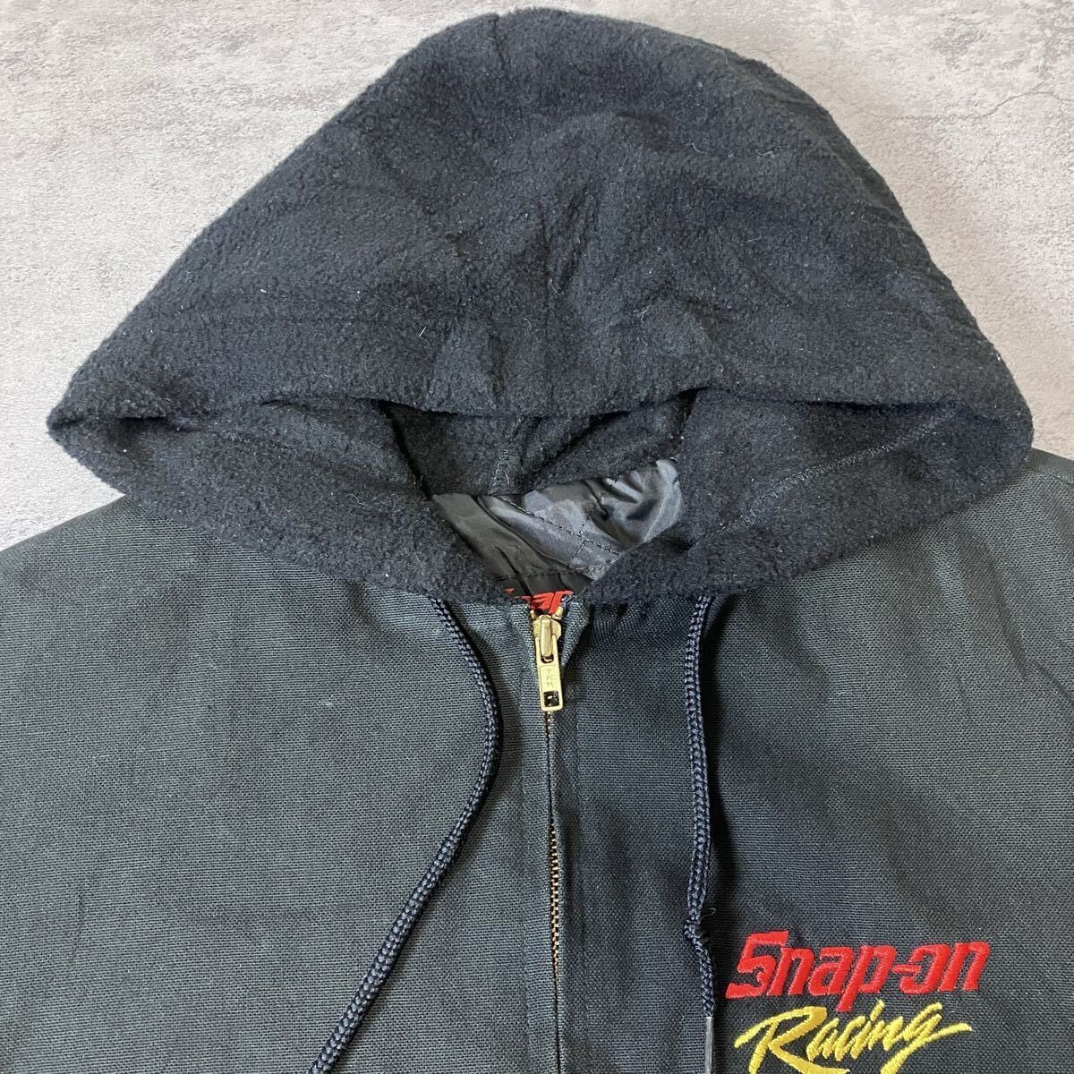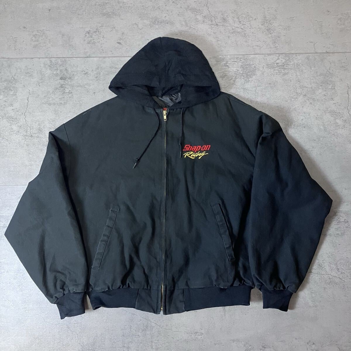 90s〜 USA製 Snap-on Racing 刺繍 ダックジャケット L ブラック ワーク ブルゾン ワークジャケット