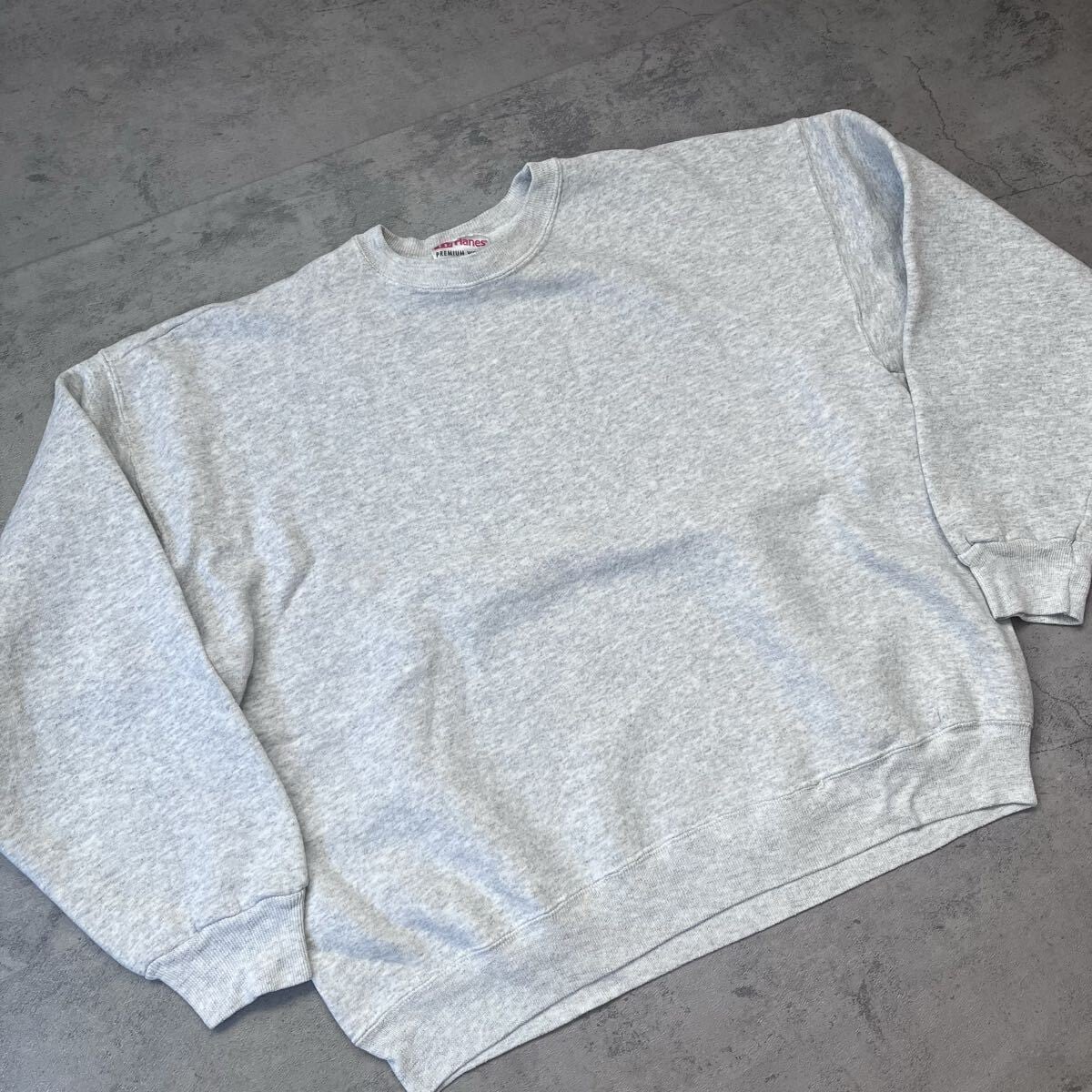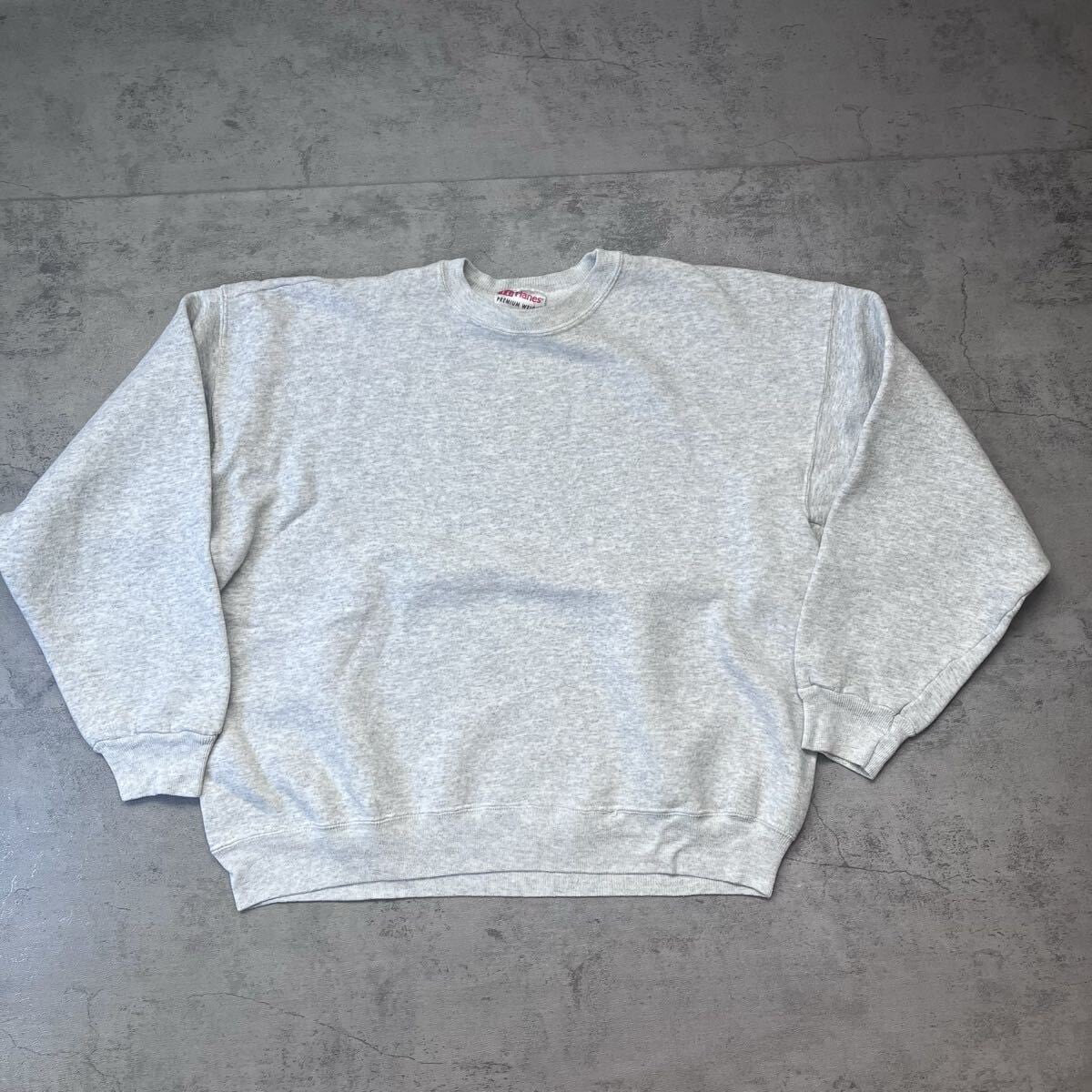90s USA製 Hanes PREMIUM WEIGHT グレー 無地スウェット XL ヘビーウェイト トレーナー ヘインズ