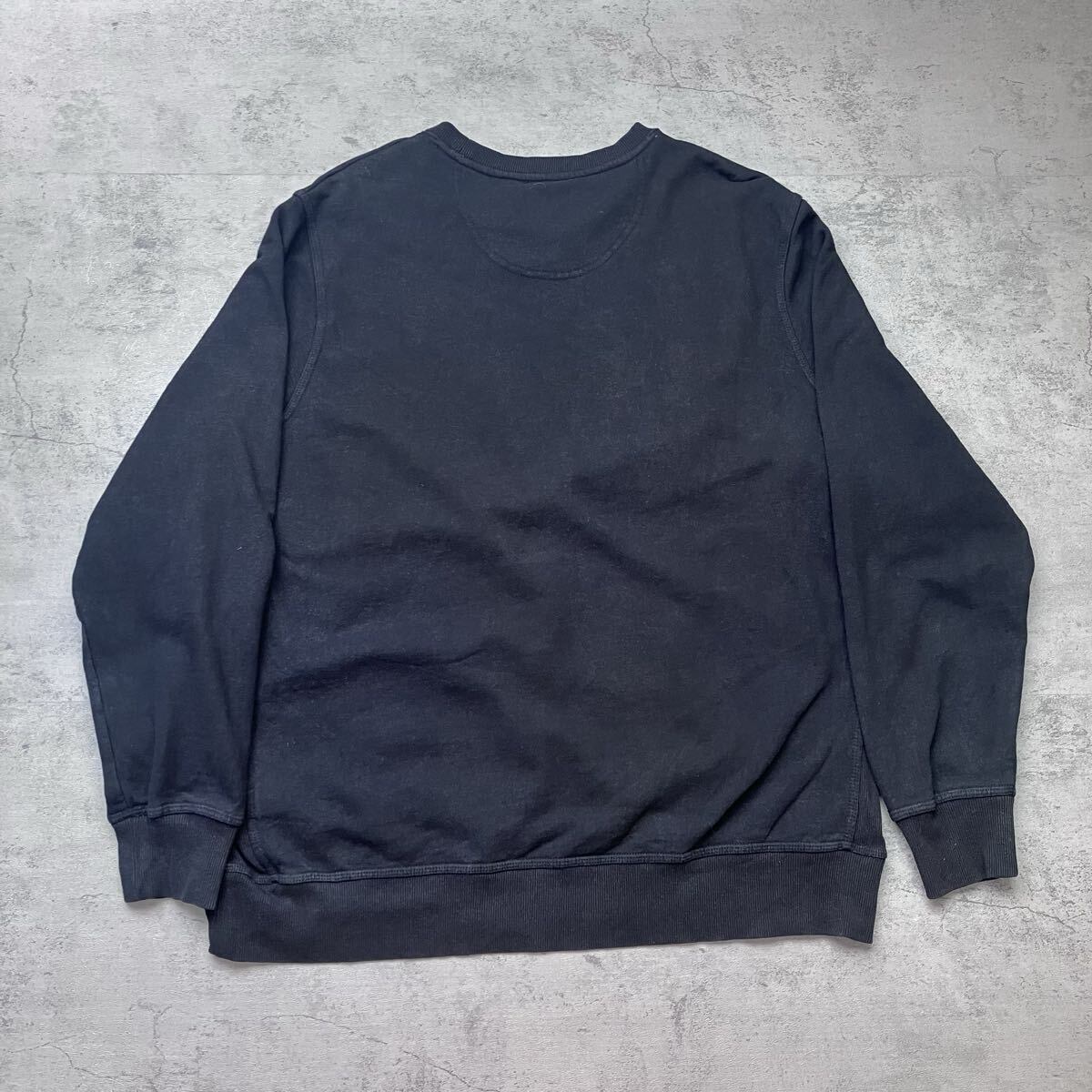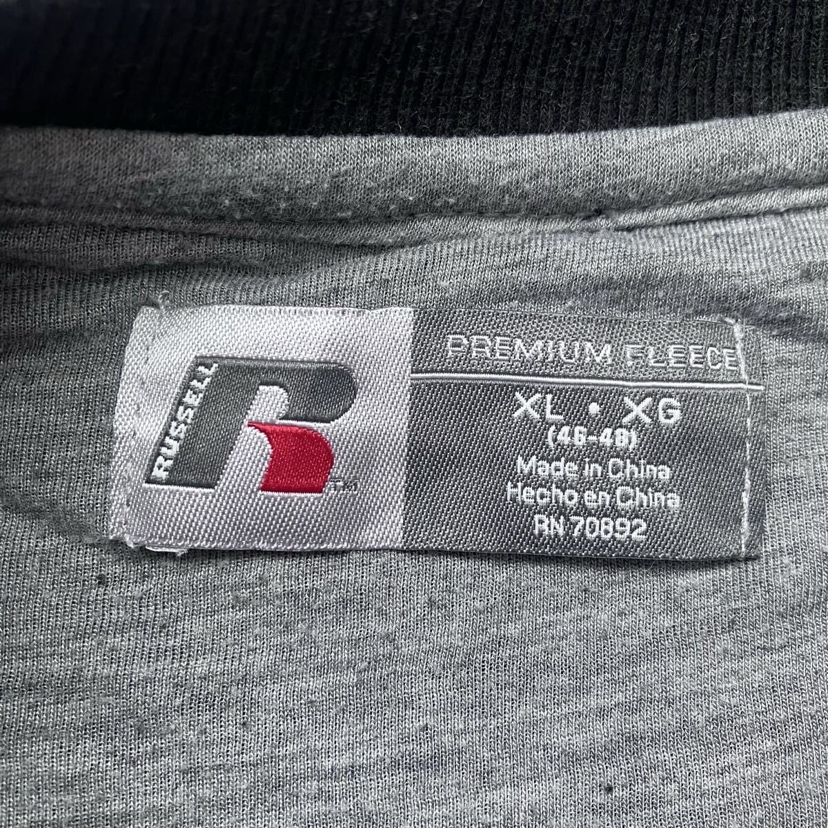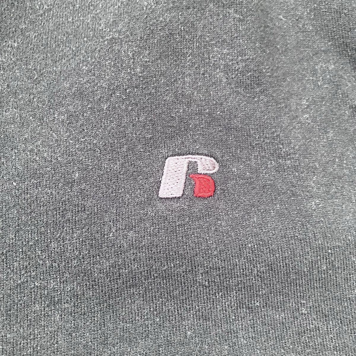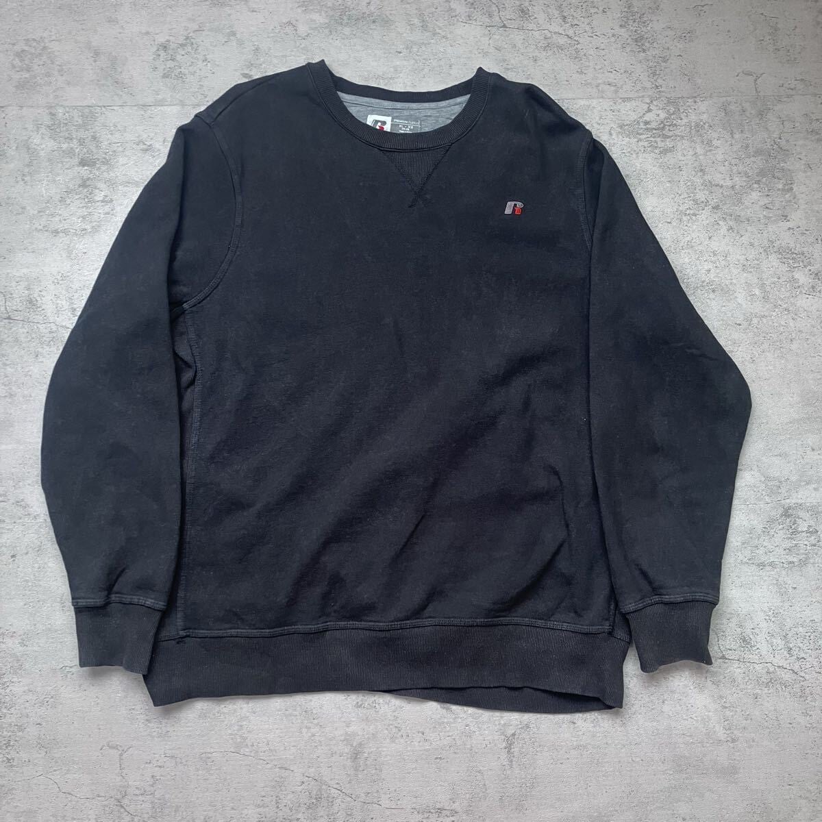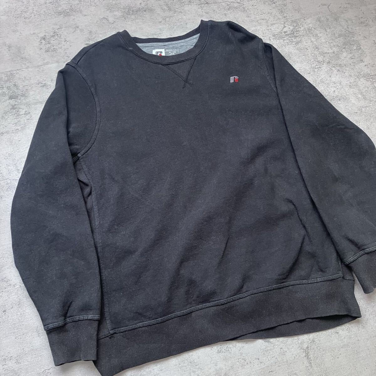 00s RUSSELL ATHLETIC ロゴ クルーネックスウェット ブラック XLサイズ サイドリブ Vガゼットラッセル プレミアムフリース