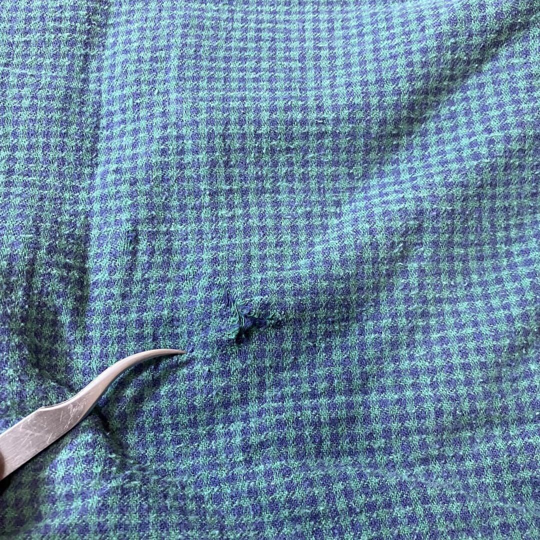 落ち着いたグリーン×ブルー系チェックに、両胸フラップポケットが映える一枚です