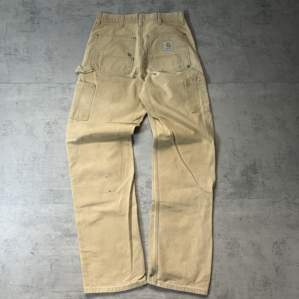 80s USA製 Carhartt ダブルニーパンツ ペインターパンツ リアルワーク フェード ブラウン ビンテージ カーハート W31 L32