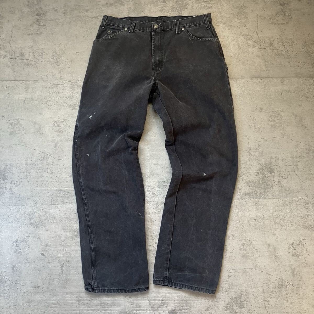 00s Dickies ダック ペインターパンツ ブラック ペンキ フェード 36×34 ディッキーズ ワークパンツ