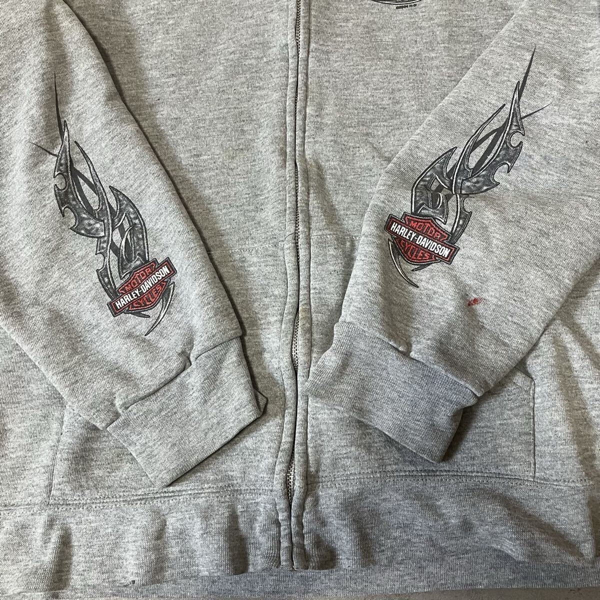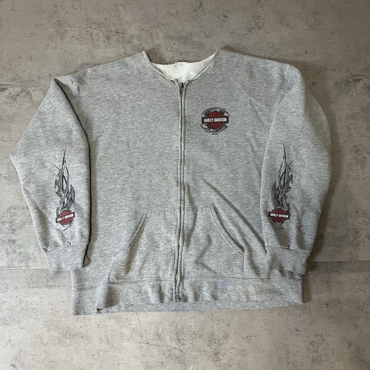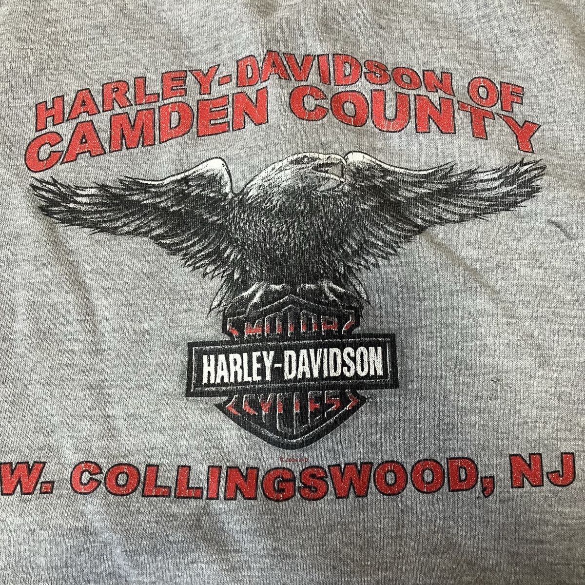 00s Harley-Davidson ディーラースウェット フルジップCAMDEN COUNTY NJ 両袖プリント イーグル グレー トライバル XL相当