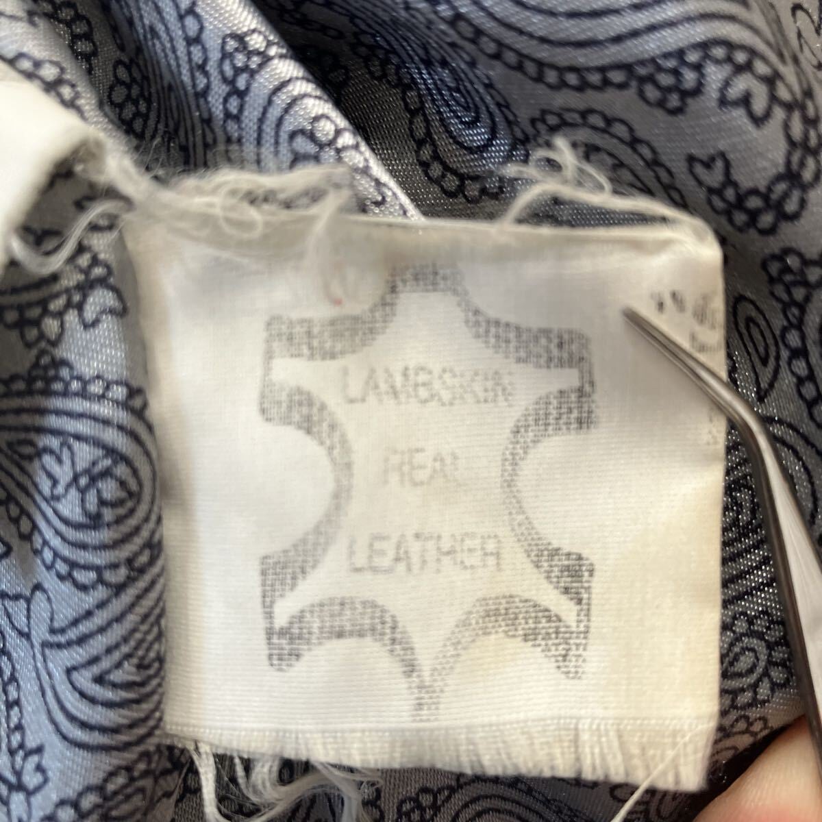 柔らかくしなやかな質感で、比較的軽い着用感。裏地は総柄ペイズリーライニング、ナイロン素材。