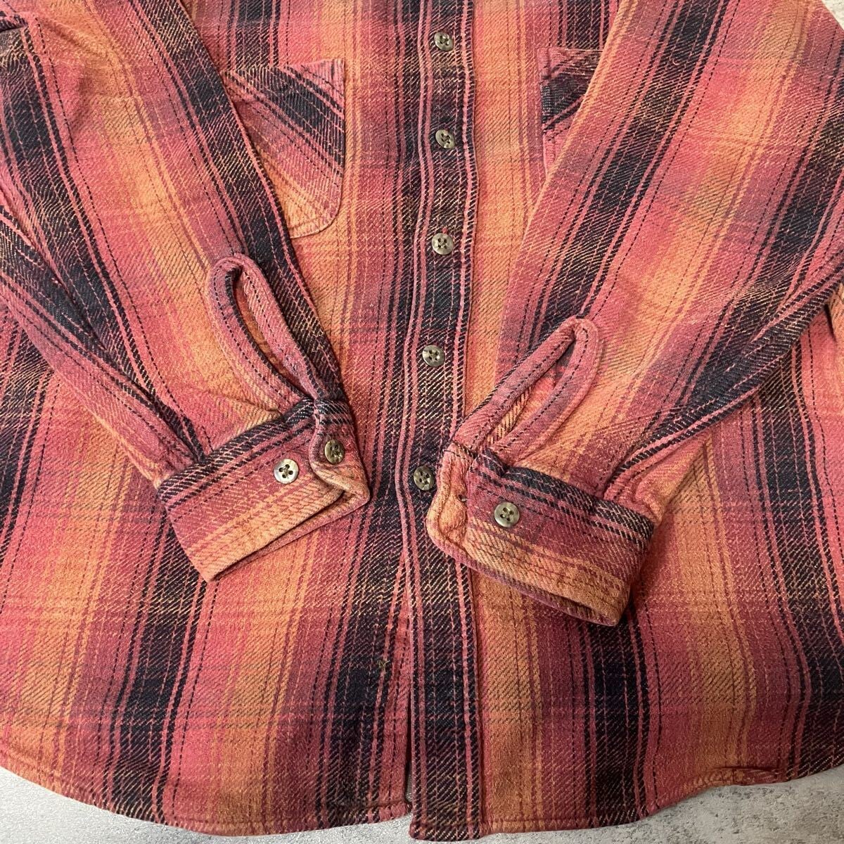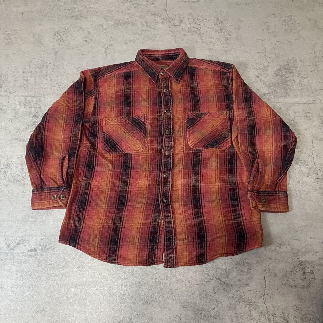 00s St. John’s Bay ストライプ フランネルシャツ レッド オレンジ ヘビーネル L-grande
