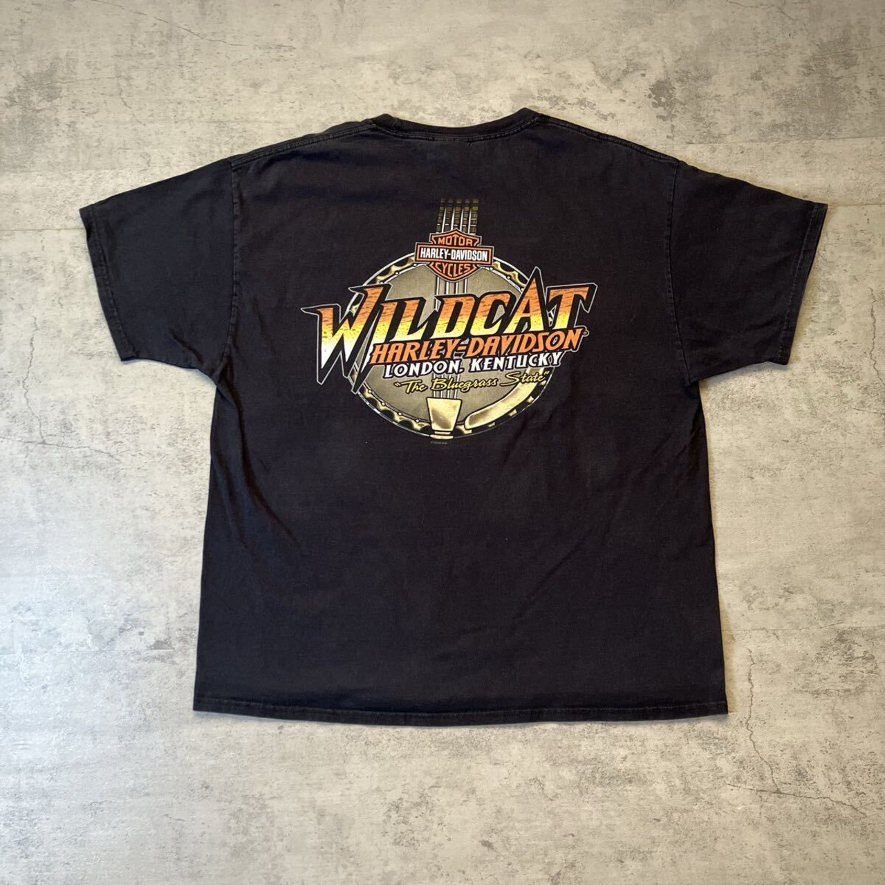 00s Harley-Davidson “WILDCAT” 両面プリントTシャツ Hanesボディ フェードブラック ハーレーダビッドソン XL