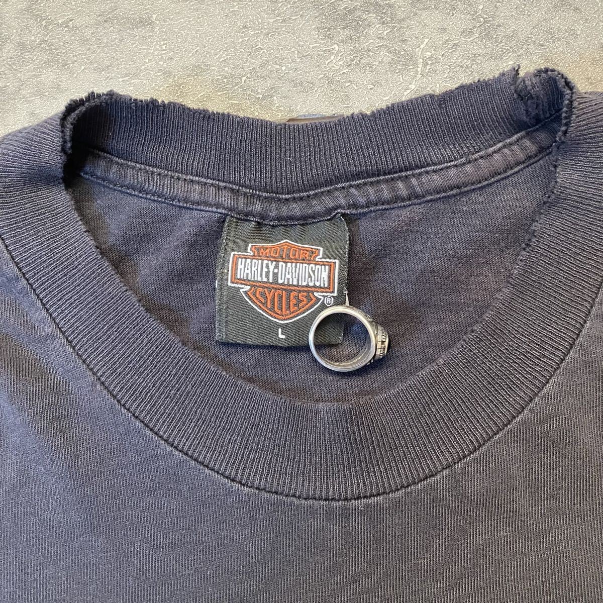 全体的にフェードかかったグランジ雰囲気のハーレーTシャツ。