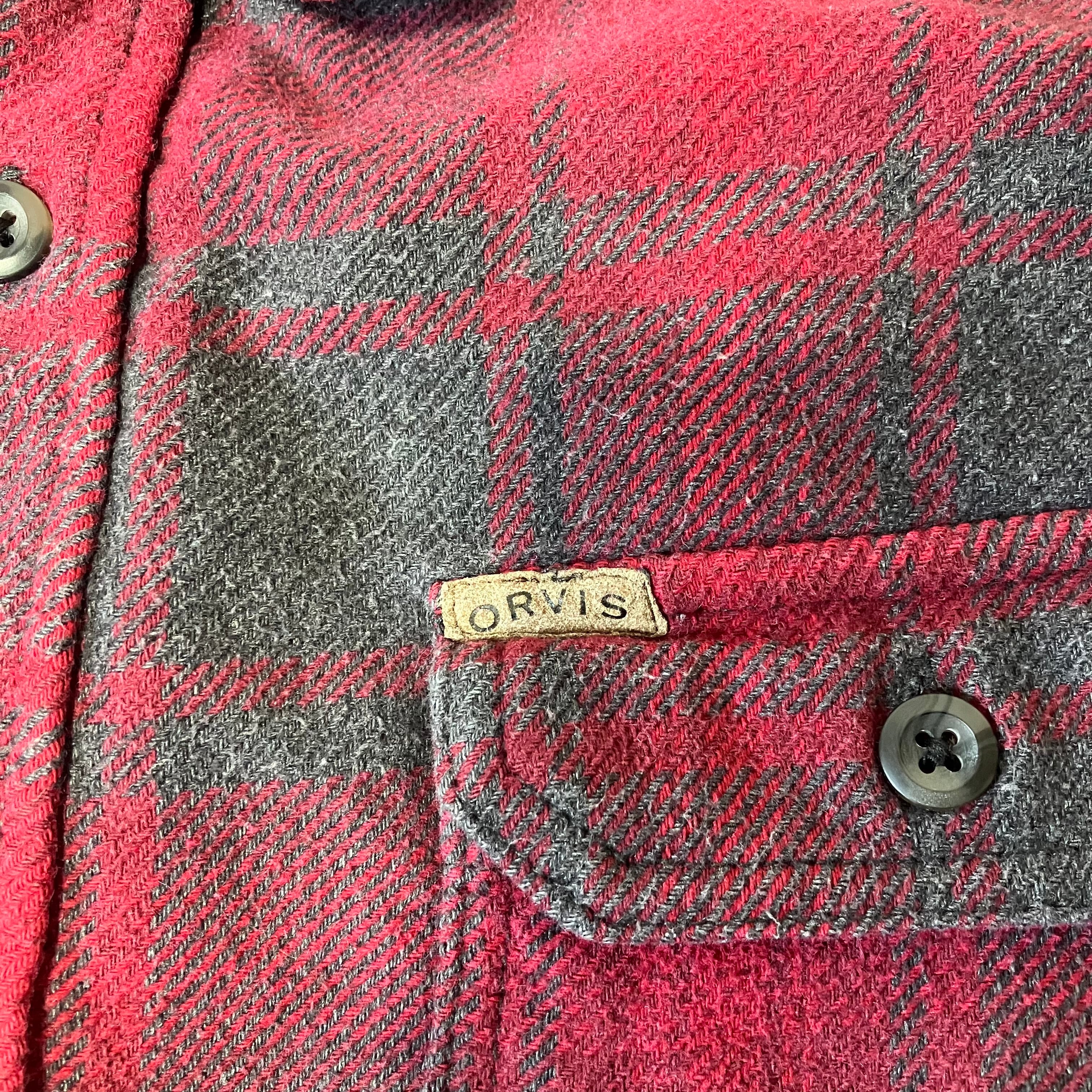 00s ORVIS ヘビーネルシャツ 赤×グレー ネル フランネルシャツ ワーク アメカジ L オービス