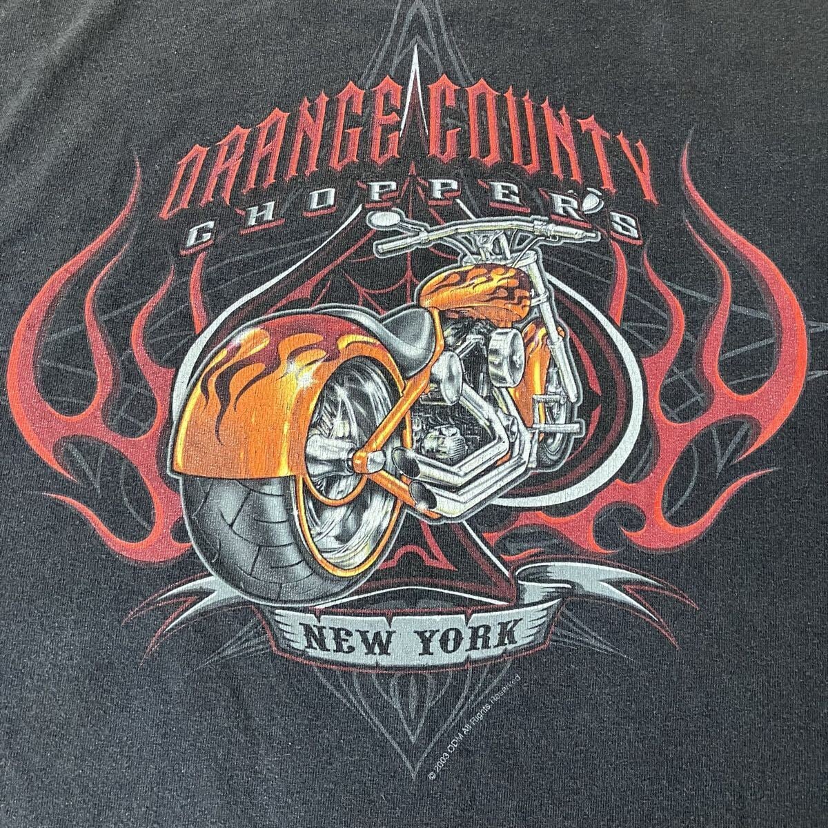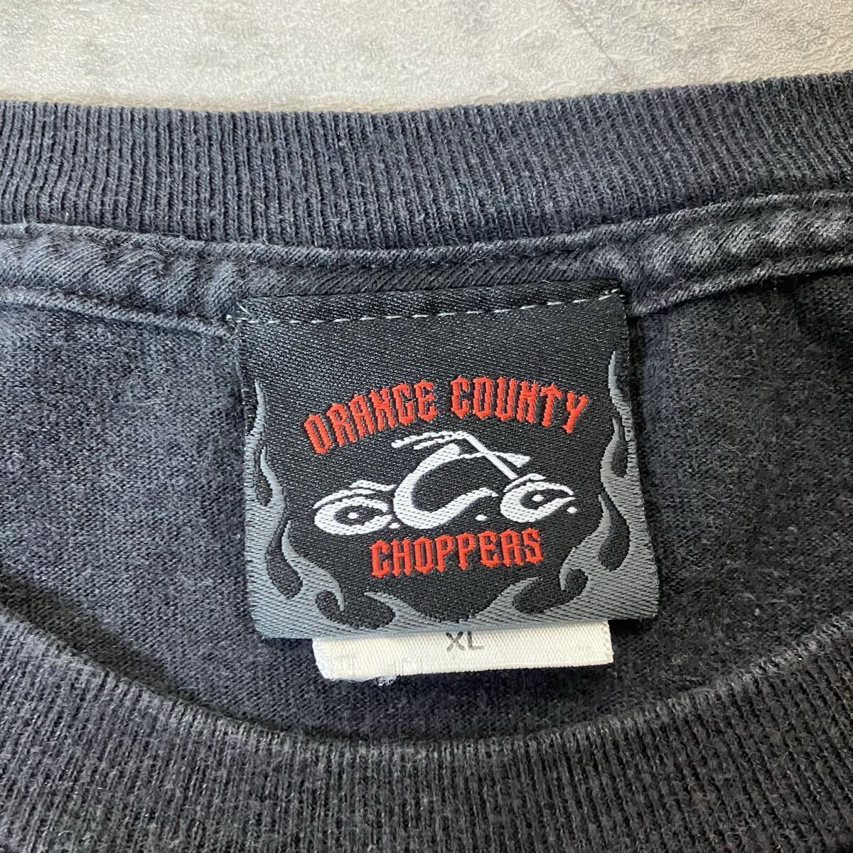 00s ORANGE COUNTY CHOPPERS フレイム チョッパー 両面プリントTシャツ XL フェードブラック モーターサイクル