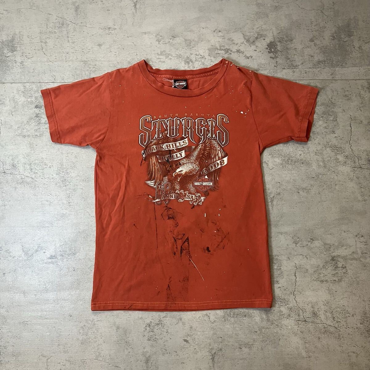 00s USA製 Harley-Davidson Tシャツ ペンキ飛び ダメージ雰囲気系 L相当