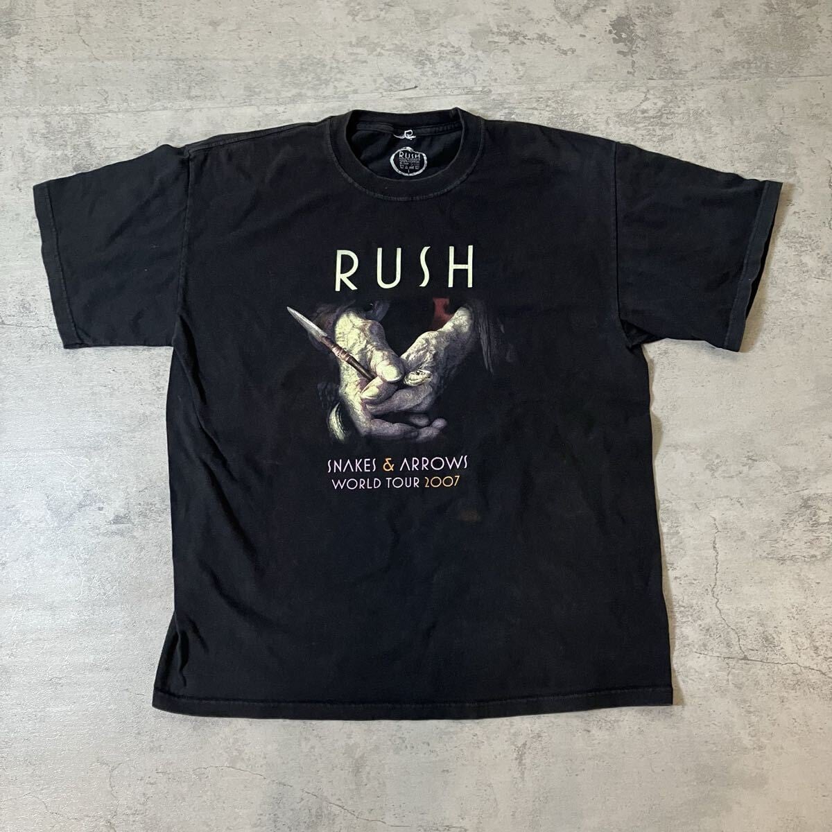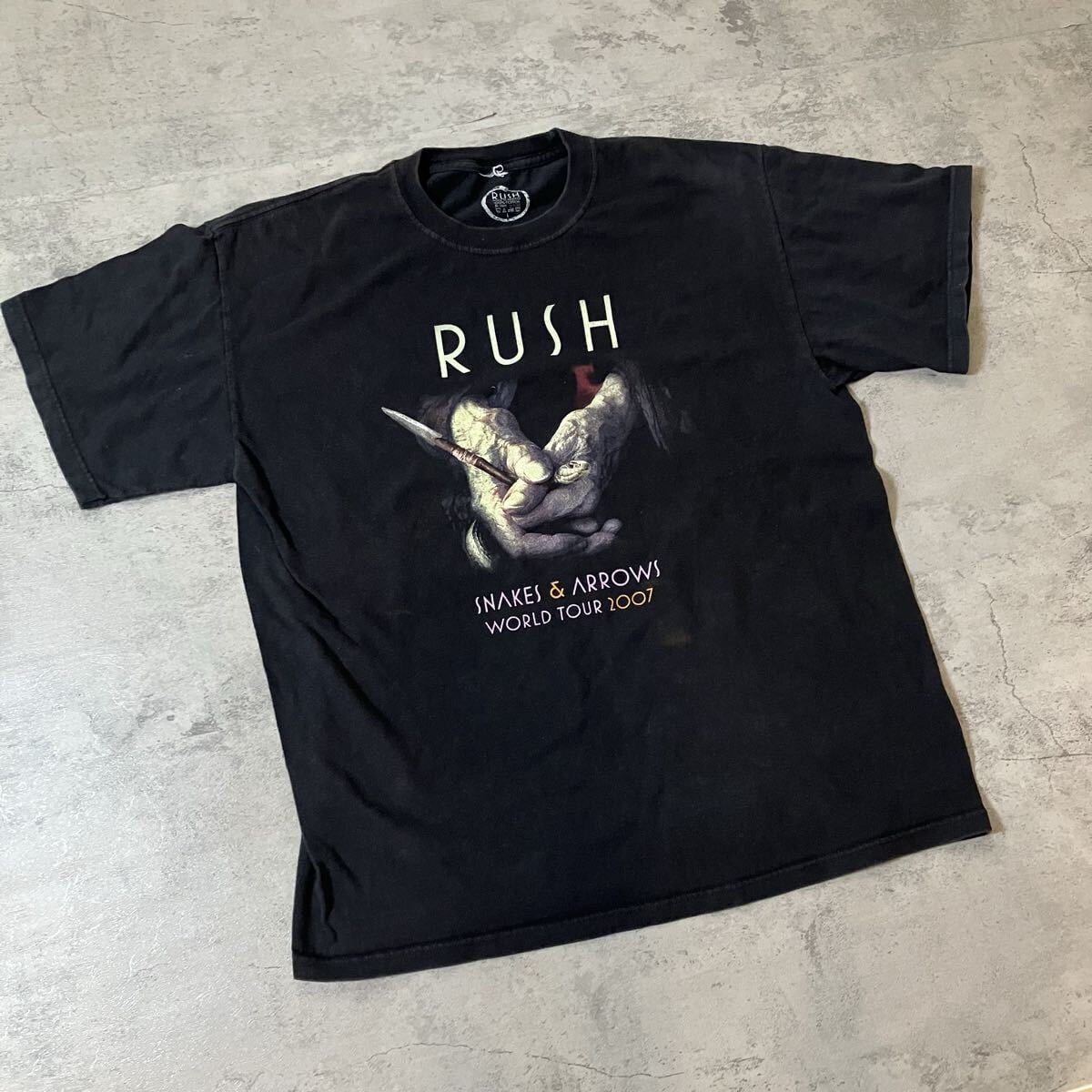 00s RUSH “Snakes & Arrows” 2007 ワールドツアーTシャツ 両面プリント フェードブラック Y2K バンドTシャツ Lサイズ