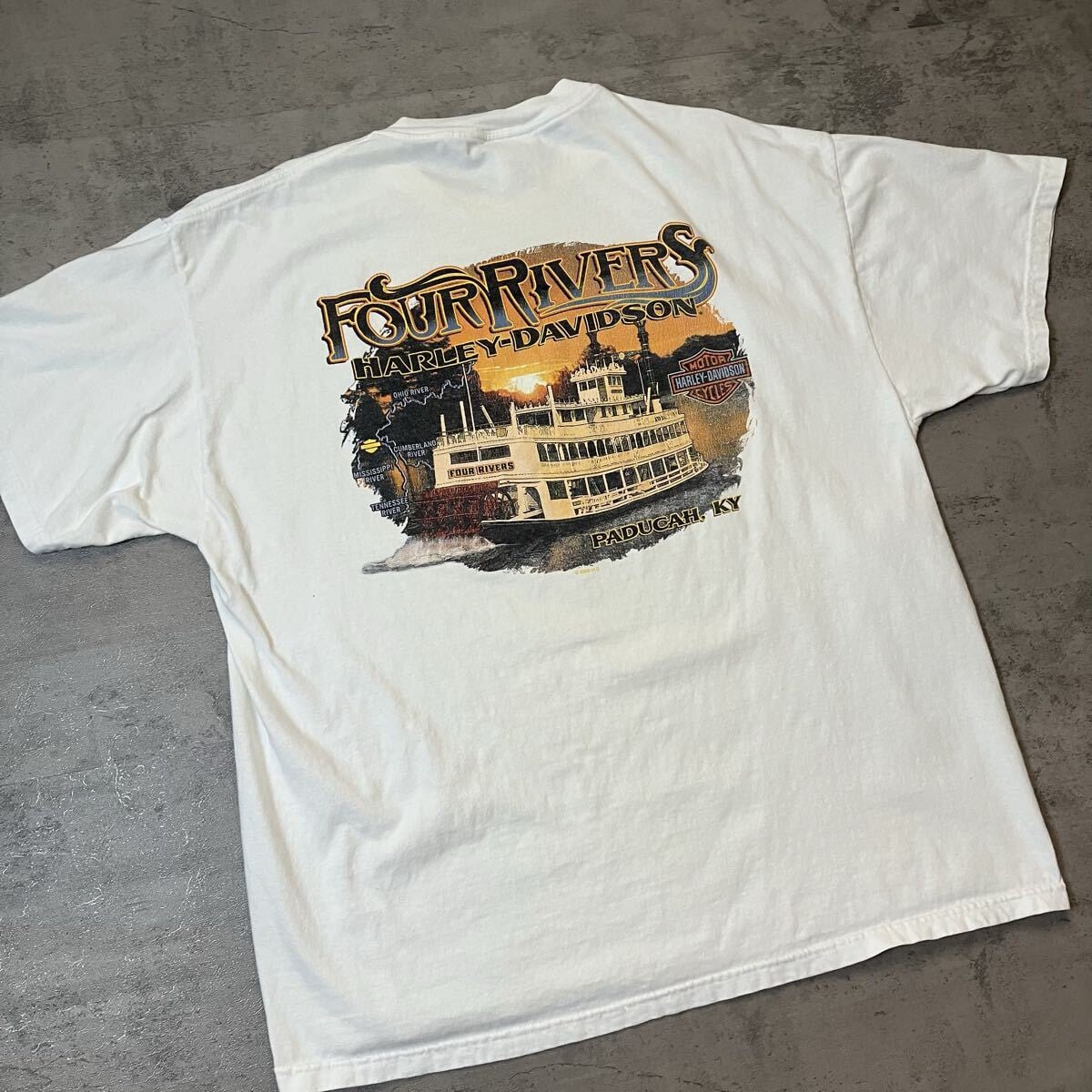 00s USA製 Harley-Davidson Four Rivers 両面プリント Tシャツ XL 白 Hanesボディ ハーレーダビッドソン