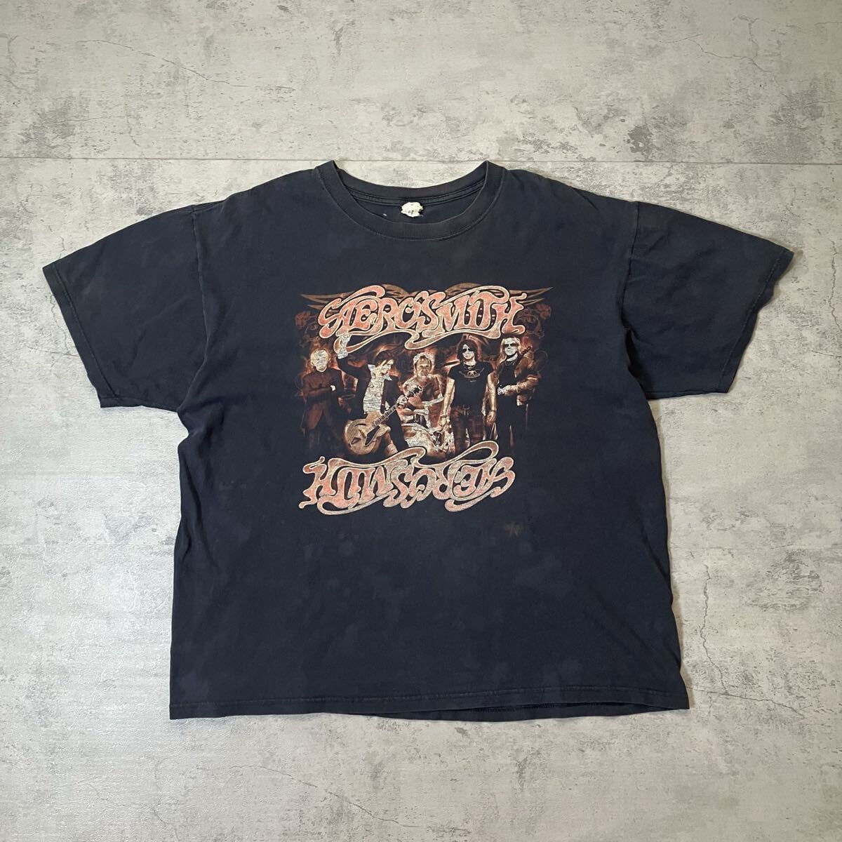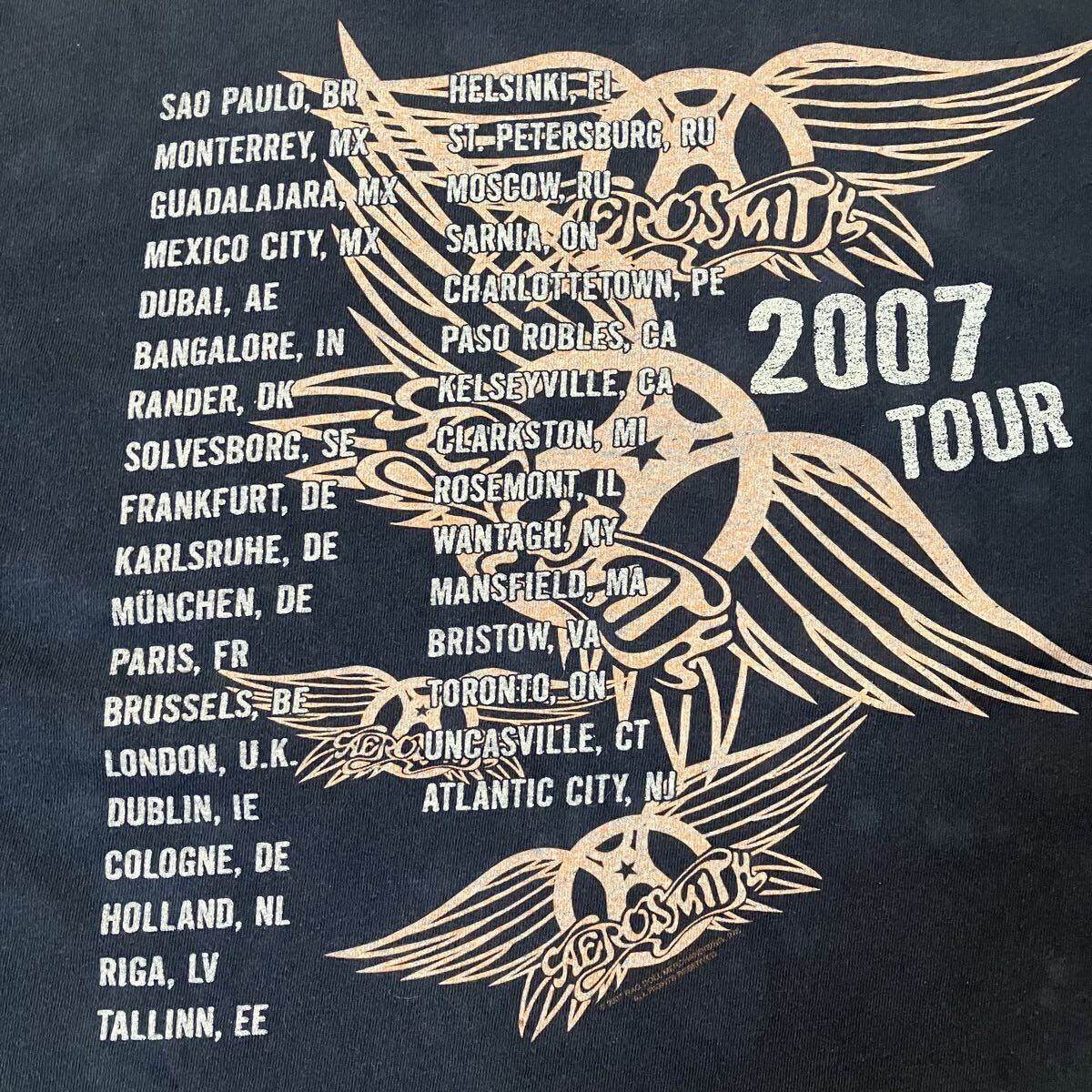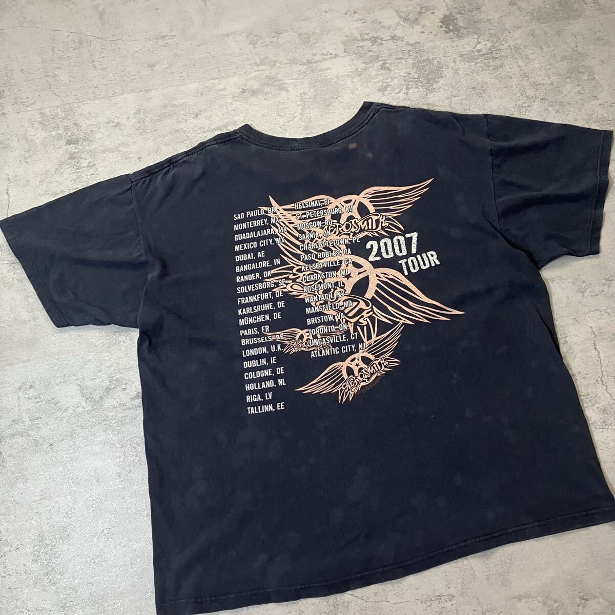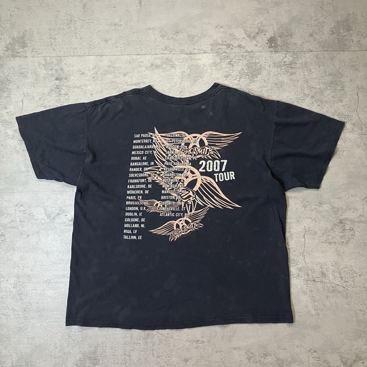 2007 AEROSMITH ワールドツアーTシャツ 両面プリント XL バンドT フェードブラック エアロスミス 短丈ボックスシルエット