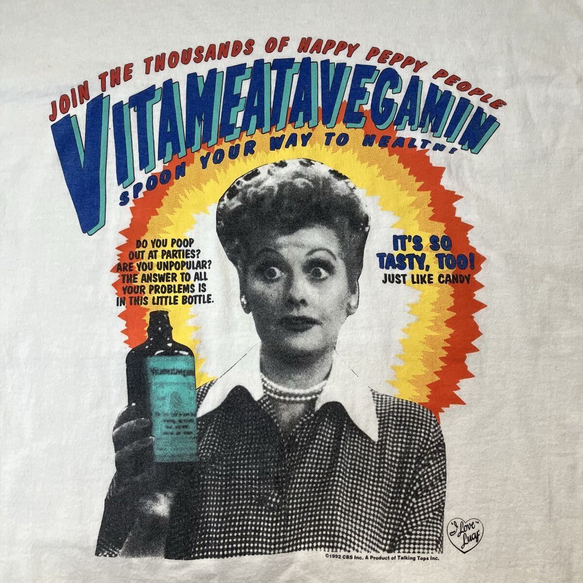 90s USA製 I Love Lucy VITAMEATAVEGAMIN プリントTシャツ Lサイズ フルーツオブザルーム vintage ビンテージ